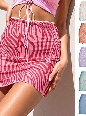 Damskie Spódnica wakacyjna Moda Codzienny Mini Wysoka talia Spódnice Kwiatowy Nadruk Średnio elastyczny Codzienny Ulica Niebieski Biały Fioletowy Fuksja Lato Poliester