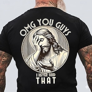 Men's Bible OMG YOU GUYS I NEVER SAID THAT Text Facepalm Jesus Christ Funny Sarcastic Humorous Religious Graphic T Shirt Short Sleeve Standard Fit Daily Wear Designer Clothing Apparel