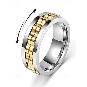 Men's Stainless Steel Spinning Fidget Ring – Black, Silver, and Gold Color Options with Chain Design for Stress Relief and Stylish Everyday Wear, Perfect Father's Day Gift