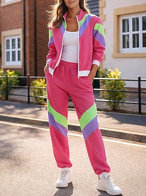 Women's Soccer Summer 80s Sportswear Global Match Drawstring Baggy Color Block Jacket Athletic Clothing Set Summer Spring Red Blue Gym Workout Jogging Running Waterproof Windproof Long Sleeve Sport