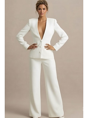 Women's 2 Pieces Suits Two Piece Trumpet Business Formal Wedding Guest Stretch Crepe Elegant Modern Long Sleeve Wingtip Collar Shawl Lapel Single Breasted One-button