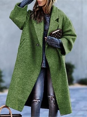 Women's Casual Jacket Comfortable Breathable Buttons Casual Plain Vacation Street Casual Daily Wear Single Breasted Long Notch Lapel Oversized Long Sleeve Outerwear Black Yellow Pink Spring Fall