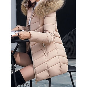 Women's Quilted Jacket Comfortable Breathable Pocket Buttons Fur Collar Casual Plain Vacation Street Casual Daily Wear Single Breasted Long Turndown Regular Fit Long Sleeve Outerwear Black White Blue