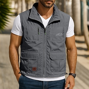 Men's Vest Gilet Fishing Vest Hiking Vest Sleeveless Vest Gilet Jacket Daily Wear Modern Contemporary Spring & Summer Outdoor Solid / Plain Color Zipper Standing Collar Loose Fit rice white Black