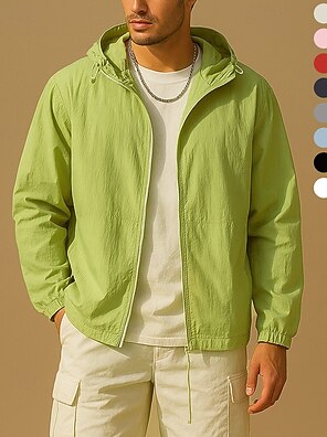 Men's Lightweight Jacket Outdoor Jacket Summer Jacket Windbreaker Sports Leisure Sports Sun Protection Windproof Hooded Summer Spring Solid Color Plain Sporty High Neck Regular Black White Red Navy