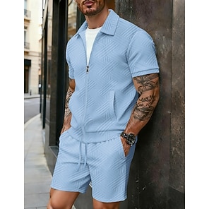 Hommes Ensemble Chemise Chemise Décontractée Chemise jacquard Et Set Uni Occasionnel Quotidien Vacances Col Rabattu Manche Courte Pantalon Court Été Printemps Mode Occasionnel Confortable Vêtement