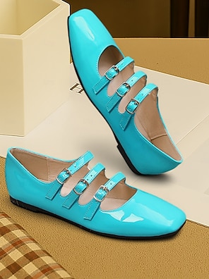 Women's Light Blue Triple-Strap Mary Jane Flats with Bows – 1950s Vintage-Inspired Square Toe Ballet Shoes for Outfits, Daily Wear, and Cottagecore Style