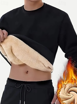 Men's Fleece Pullover Sweatshirt Lounge Top Thick Long Sleeve Top Athleisure Solid Colored Windproof Warm Gym Hiking Workout Sportswear Activewear Black White Yellow