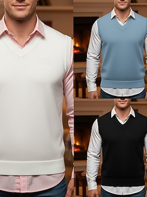 Homens Colete de moletom Vestido Suéter Pulôver suéter Colete Suéter de malha Estriado Cabo Tricotar Tops regulares Tricotado Tecido Decote V Moda Casual Férias Roupa Diária Roupa Outono Inverno