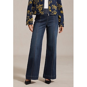 Calça jeans feminina de perna larga, cintura elástica, painel frontal emagrecedor, casual, férias, uso diário, primavera, verão, outono