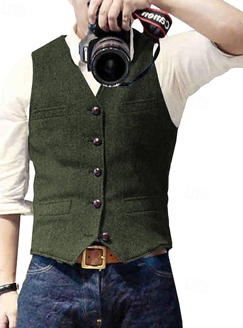Homens Colete Gilet Férias Festa O negócio Moda Casual Primavera Outono Bolsos Botões Poliéster Confortável Côr Sólida Comum 1 Botão Decote V Normal Prata Preto Champanhe Vinho Colete #12005214