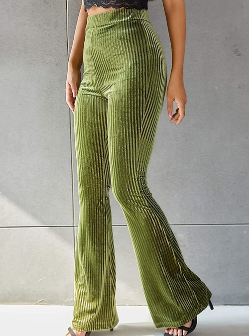 Mulheres Calças de Veludo Parte inferior do sino Moda Roupa de rua Comprimento total Natural Tecido Cintura elástica Exterior Confortável Ao ar livre Rua Final de semana clarete Verde Escuro #12694509