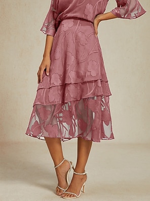 Pentru femei Fustă din șifon Elegant Midi Talie Medie Fuste Multistratificat Inelastic Invitată de cununie Purpuriu regal Vară Poliester