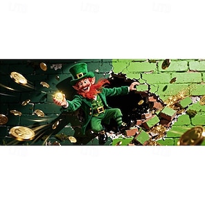St Patrick's Day garageportsskydd, grön fyrklöver &guldmyntdesign, festlig väggbanderoll för helgdag, St. Patricks dag-festdekoration för garage eller hem.