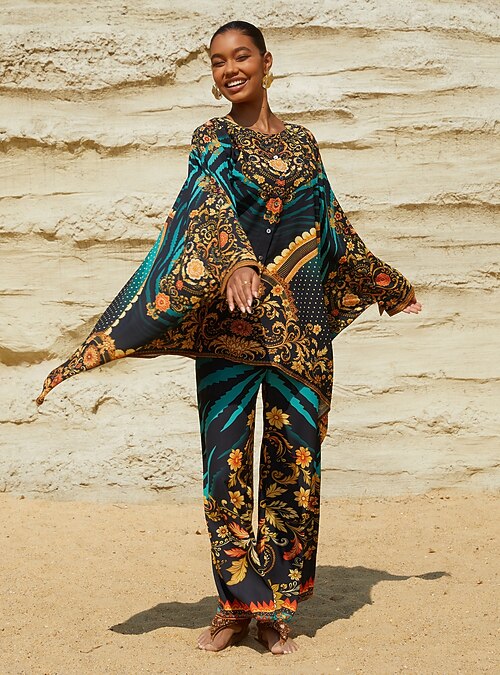semester vintage mönster dolman ärm chiffong skjorta #14578101